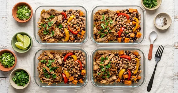 Each of these make-ahead breakfast bowls delivers 33 grams of protein and 9 grams of fiber from a combination of lean pork tenderloin and black-eyed peas. Pork tenderloin is one of the leanest cuts available, providing just 2.5 grams of fat per four-ounce portion while matching chicken breast gram-for-gram on protein. Paired with black-eyed peas — a Caribbean pantry staple rich in folate, iron, and slow-digesting starch — these bowls offer a nutritionally complete breakfast that holds up beautifully through five days of refrigeration.