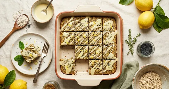 Each serving of these Polish-inspired poppy seed squares delivers 28 grams of protein from an unlikely source — puréed cannellini beans blended seamlessly into the batter alongside oat flour and plant-based protein powder. The combination provides a complete amino acid profile while keeping fat low at just 9 grams per serving. Two squares per serving supply meaningful fiber from both the beans and poppy seeds, supporting steady blood sugar without digestive strain.