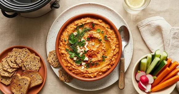 For GLP-1 users, this dip works especially well as a mid-afternoon snack served with raw vegetable sticks. The combination of slow-digesting bean protein and soluble fiber keeps you satisfied for hours without the heaviness that comes from fatty dips like guacamole or cheese-based spreads. The soft, smooth texture is gentle on the digestive system, and the slow cooker does all the work — set it in the morning and your snack is ready by afternoon.