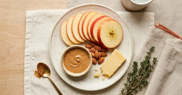 The apple and almond butter plate is the most accessible version of this complete snack concept. No cooking. No assembly beyond slicing an apple. The components are shelf-stable or last weeks in the fridge. The flavor combination — sweet apple, creamy almond butter, salty sharp cheese — is genuinely appealing across a wide range of appetite states. And because each component is discrete, you can eat as much or as little of each as your appetite allows without the pressure of a composed dish.