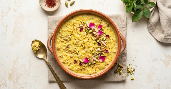 This phirni tastes best truly cold. The flavors of saffron, cardamom, and rose water become more distinct and aromatic after chilling. Resist the temptation to eat it warm from the pot — it will be significantly better the next day, making it an ideal make-ahead sweet.
