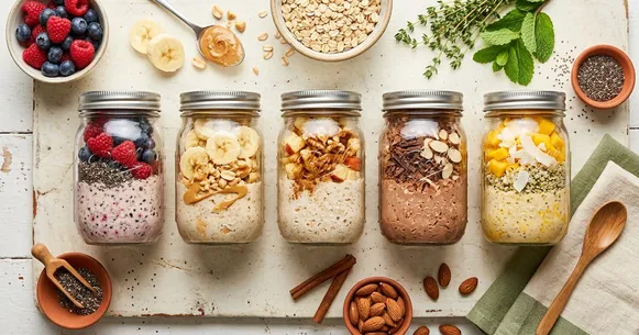 Chia seeds add a small but meaningful amount of omega-3 fatty acids and approximately 5g of additional fiber per tablespoon. They also help thicken the mixture overnight, producing the pudding-like consistency that makes overnight oats appealing rather than just oatmeal that hasn't been cooked.