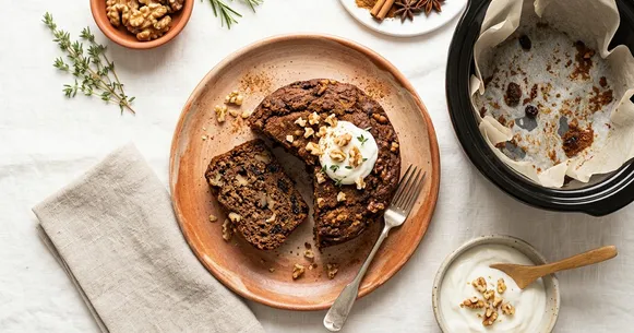 Line the slow cooker for easier removal. If you find the cake sticks despite spraying, cut a parchment paper round to fit the bottom of your slow cooker and spray over it. This makes clean removal virtually guaranteed and simplifies cleanup significantly.